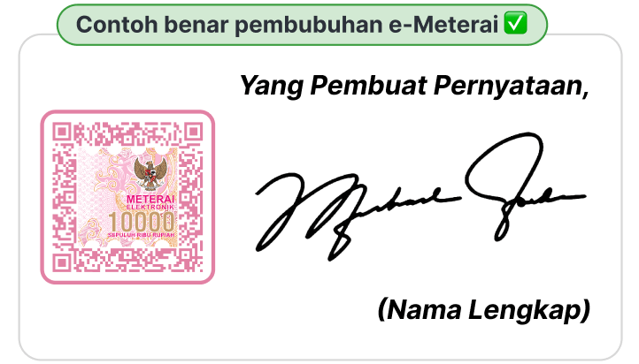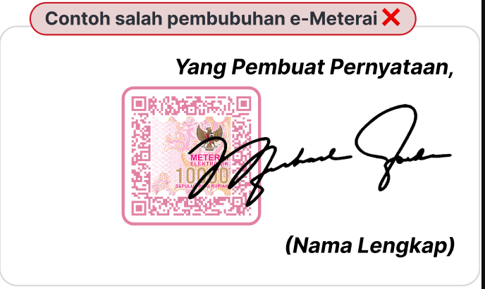 Posisi e-Materai yang tepat untuk tanda tangan dokumen